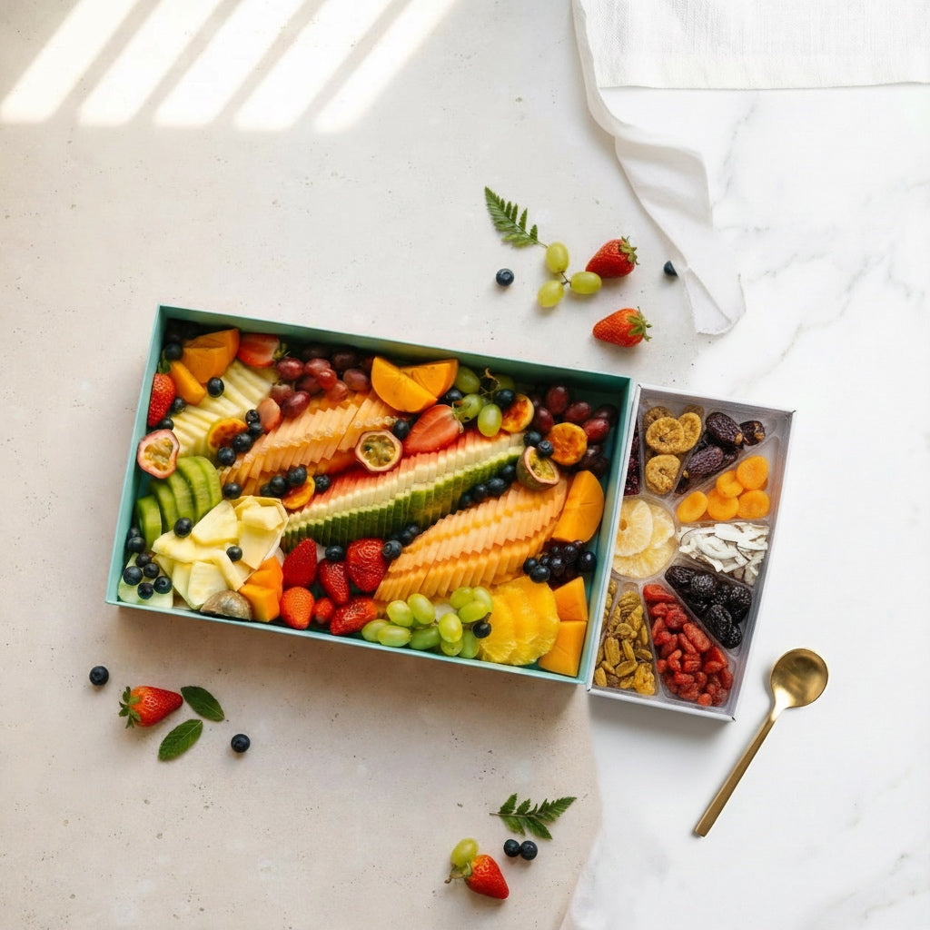 כל מגש פירות הוא יצירת אמנות מעוצבת בקפידה, עם תשומת לב לפרטים והתאמה מלאה לטעם ולסגנון שלך.